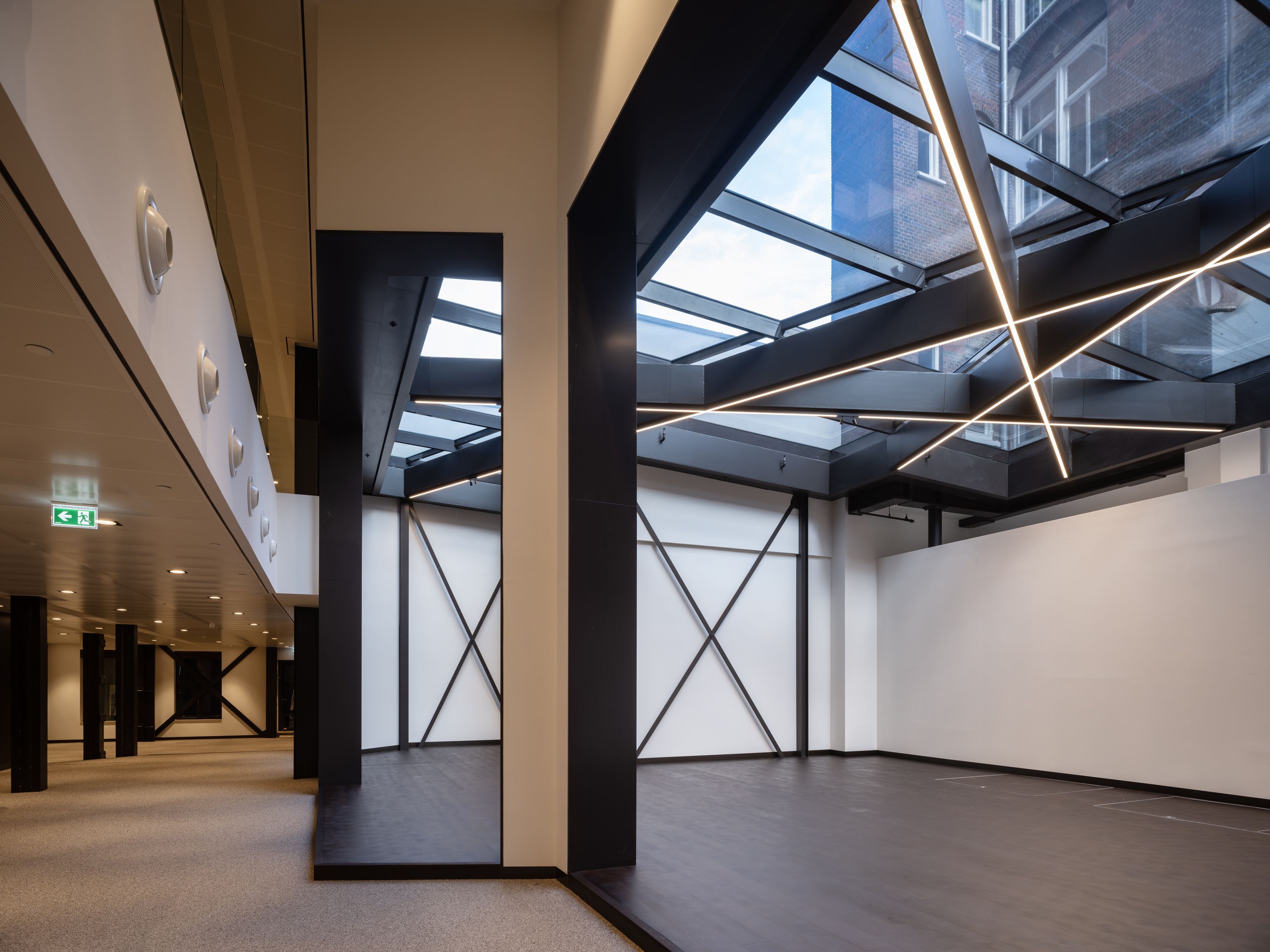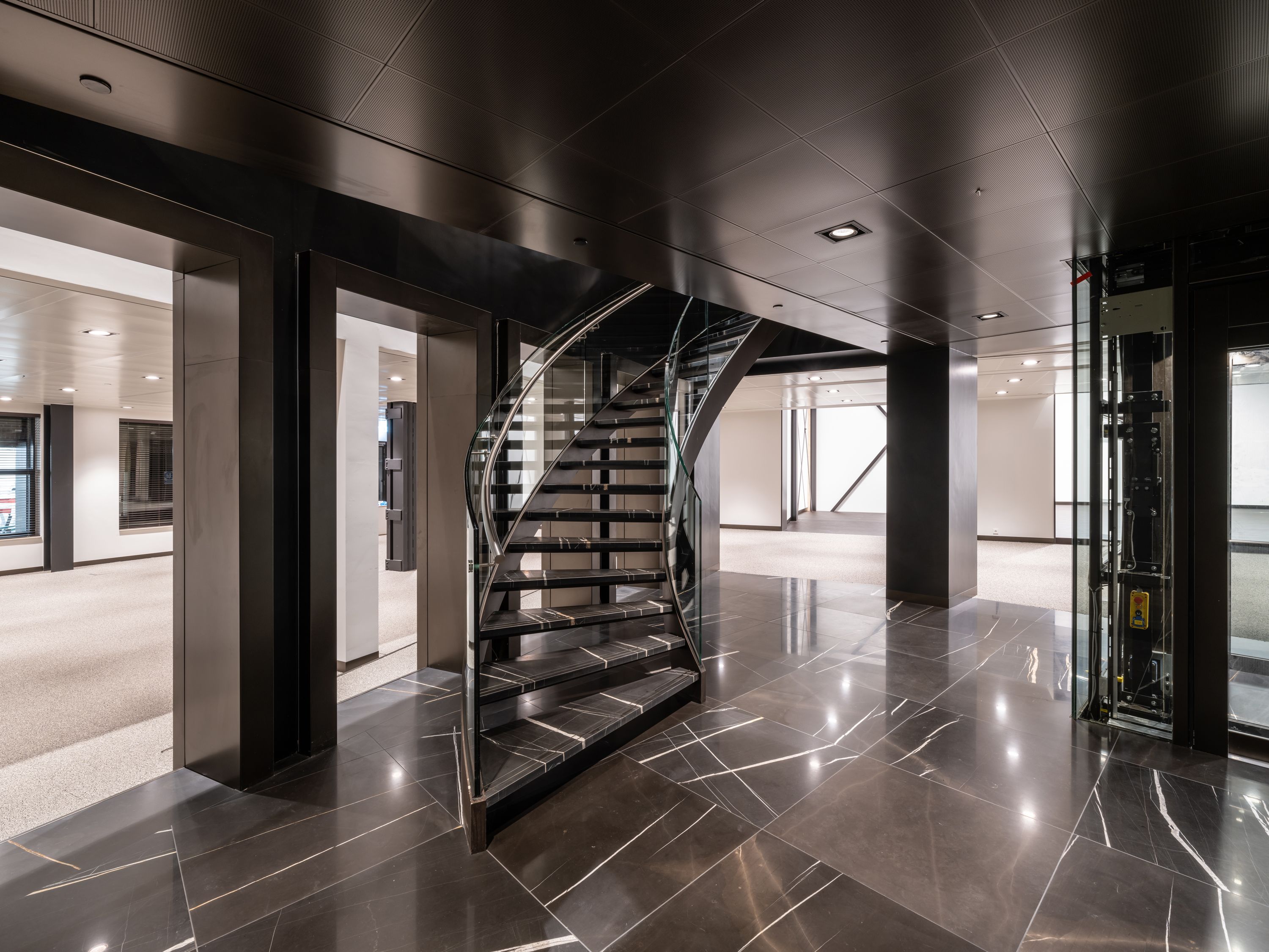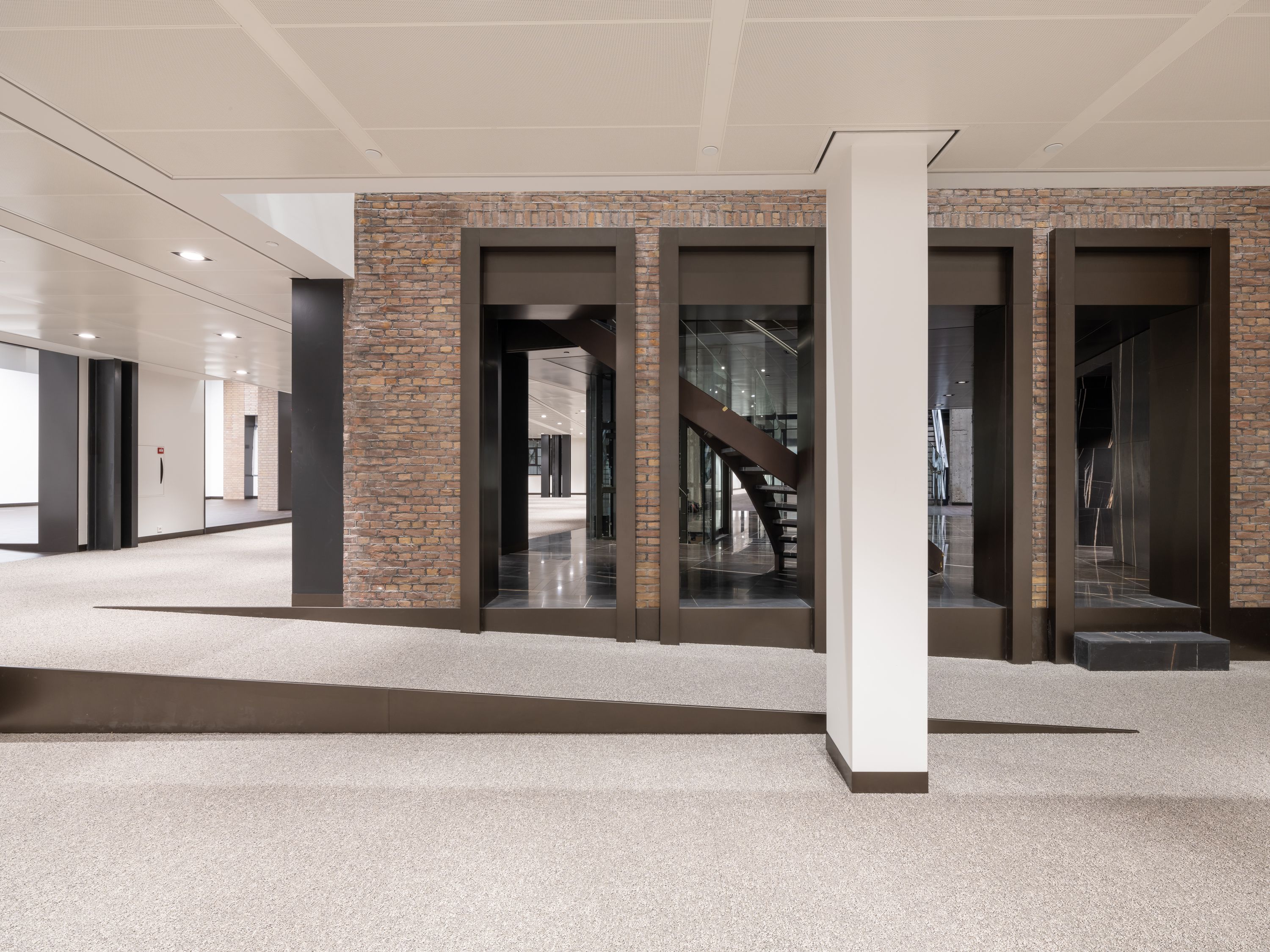 Een groot deel van de herontwikkeling richtte zich op de nieuwe verdiepingsvloer, bestaande uit een staalconstructie voorzien van staalplaat-betonvloeren. Een deel van de staalconstructie blijft in het zicht. De vloerranden zijn afgewerkt met glazen balustrades en de toegang is voorzien van stalen trappen met natuursteen treden. Verder zijn er nieuwe, lichte metalstudwanden, afgewerkt met natuursteen, houtfineer en pleisterwerk toegevoegd en worden de vergaderruimtes voorzien van hoogwaardig afgewerkte stalen kozijnen.