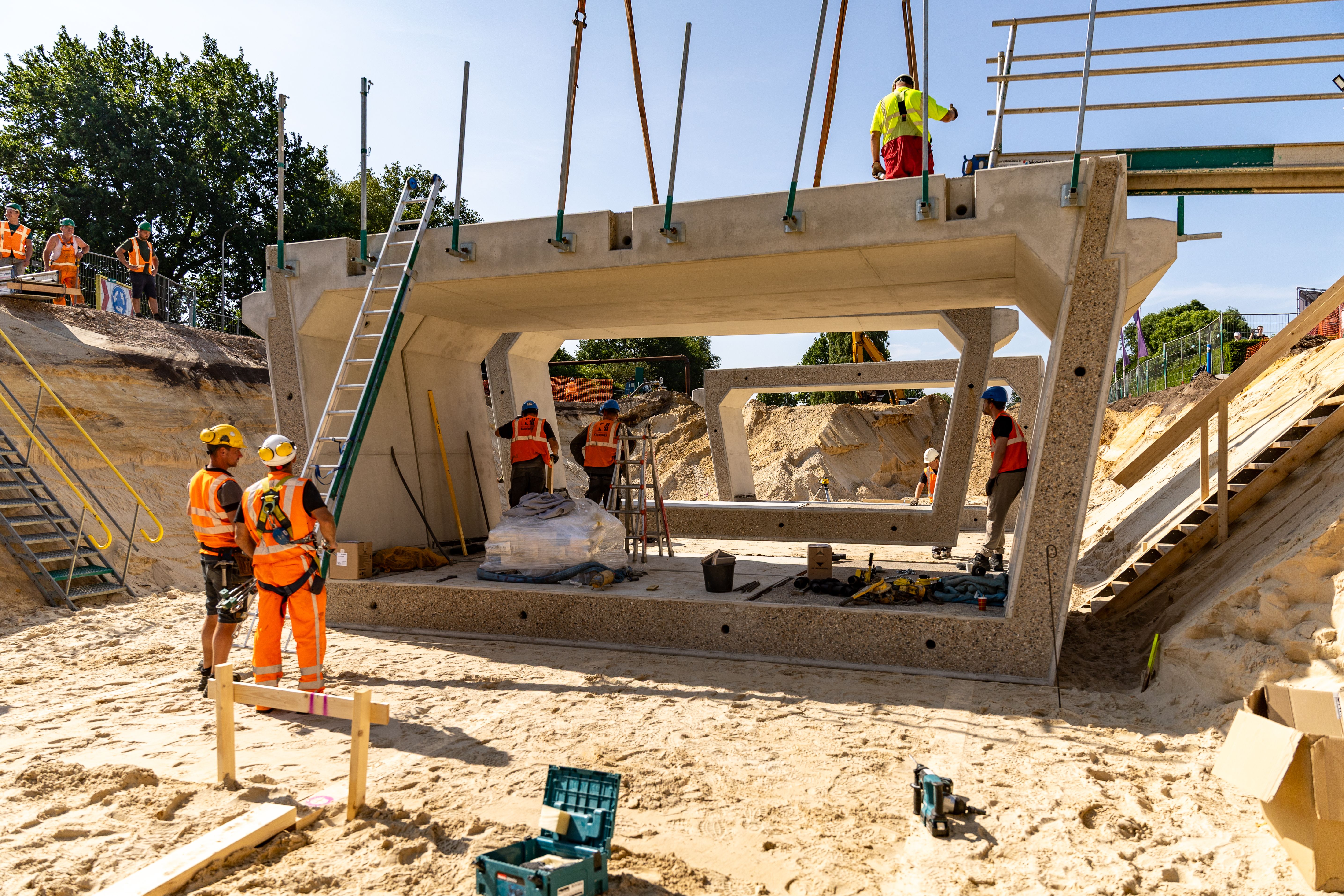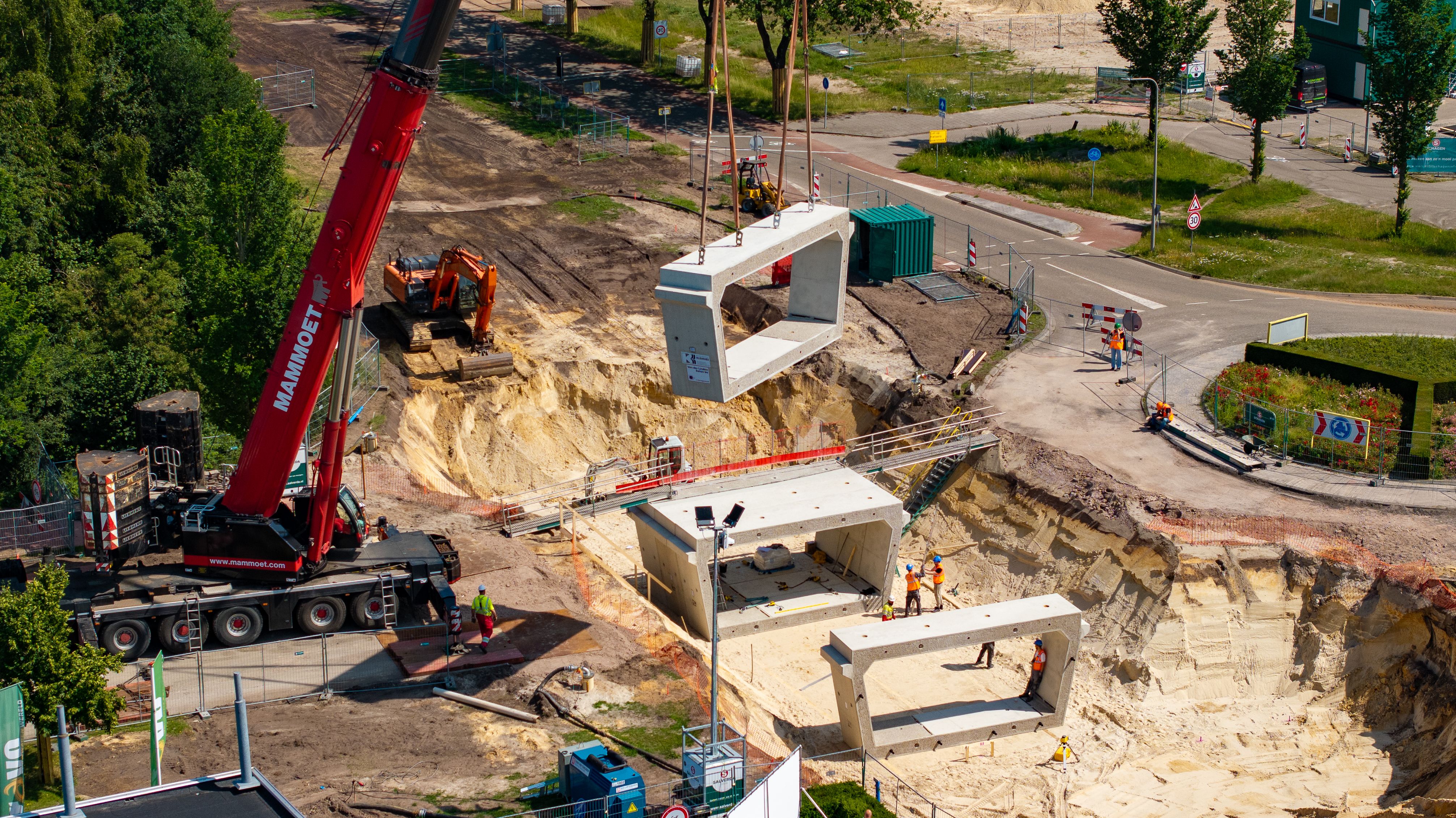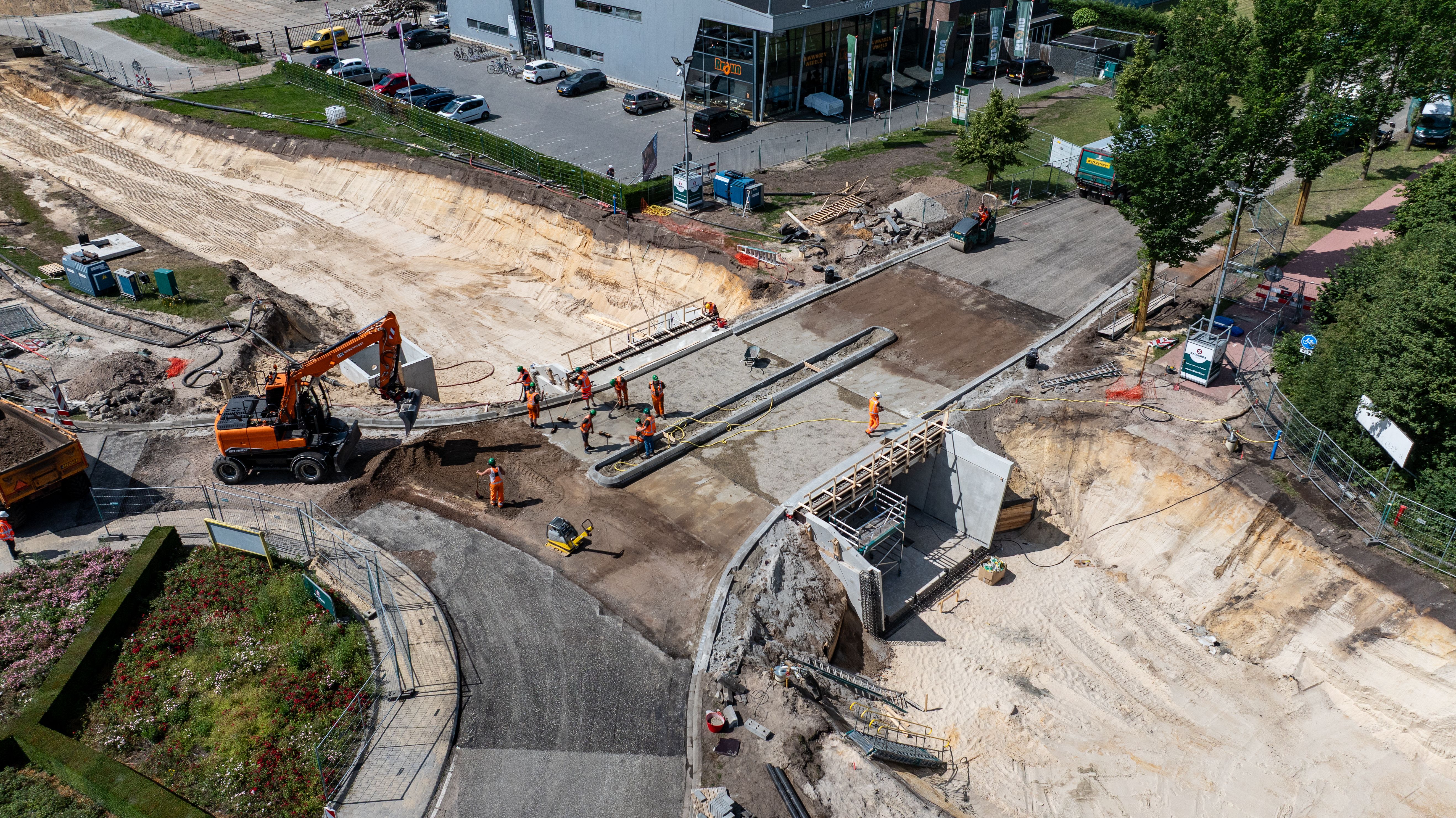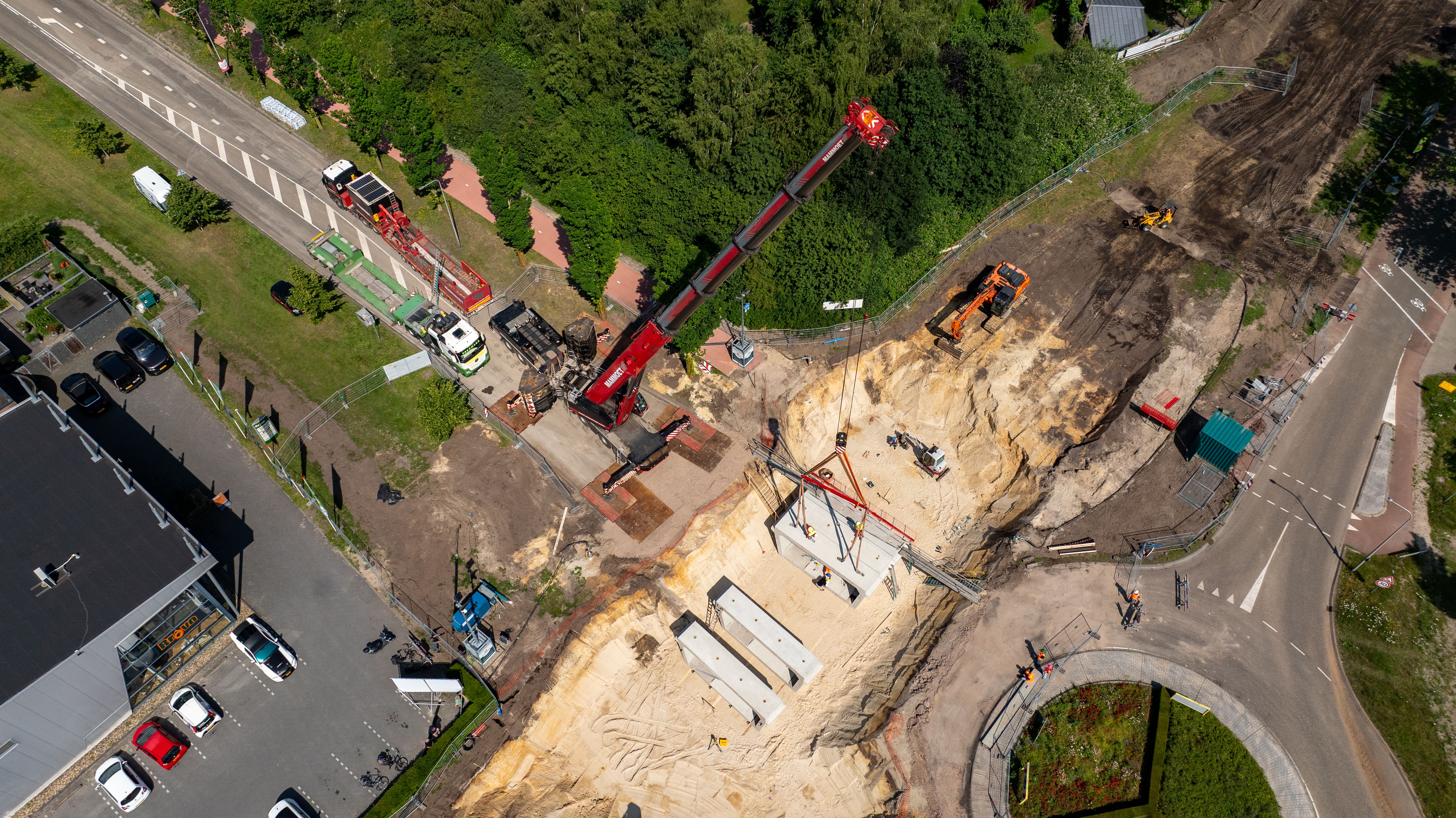Een bijzonder aspect van dit project was om een prefab gesloten tunneldeel te realiseren en binnen een week te plaatsen. En dat is gelukt! De Slagenweg, waar de tunnel onderdoor is gebouwd, is namelijk een drukke weg. Het was daarom cruciaal om de afsluitingstijd van deze weg tot een minimum te beperken. Eén van de eerste acties in dit project was daarom ook het gereed maken van de aansluiting ter hoogte van de Slagenweg.