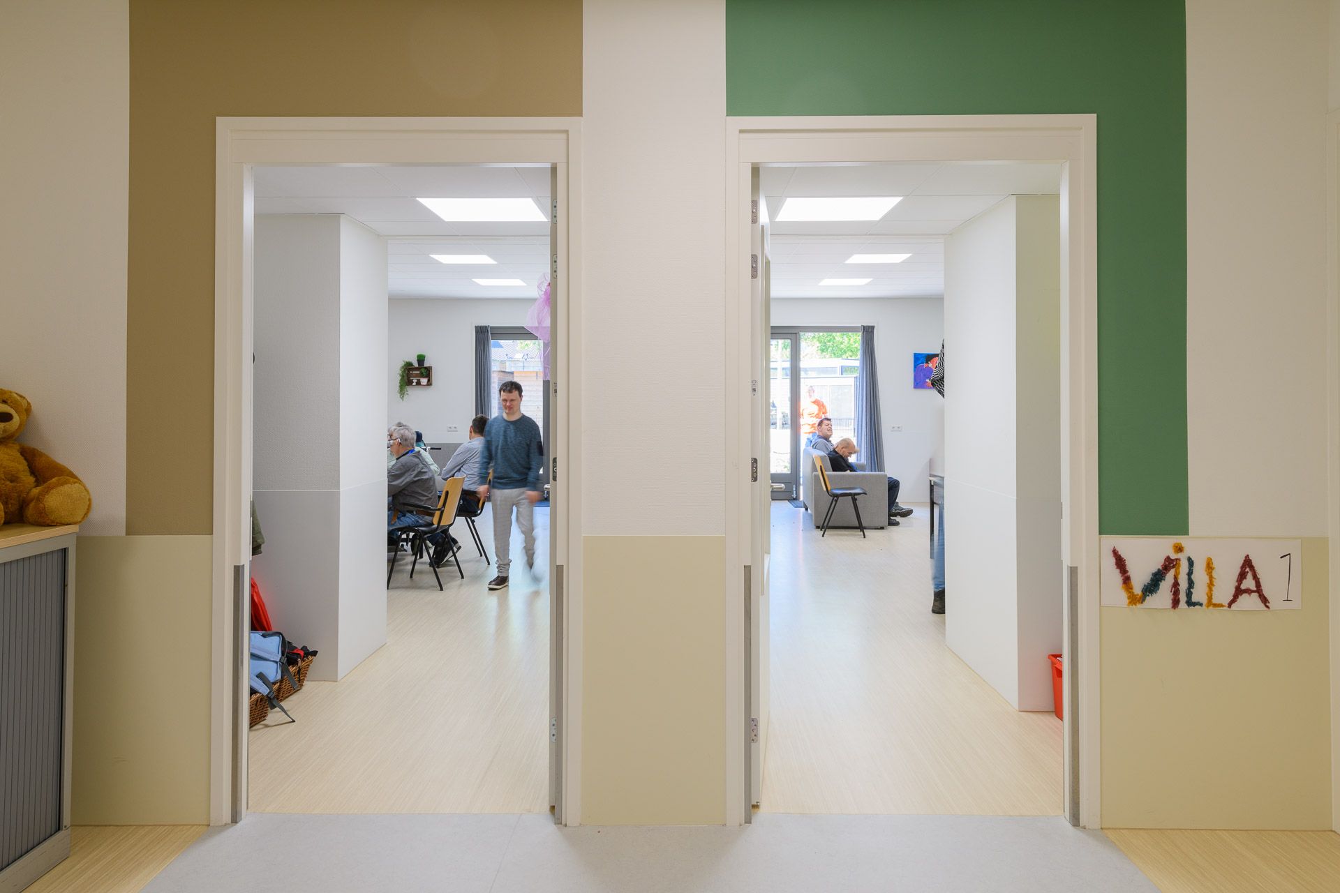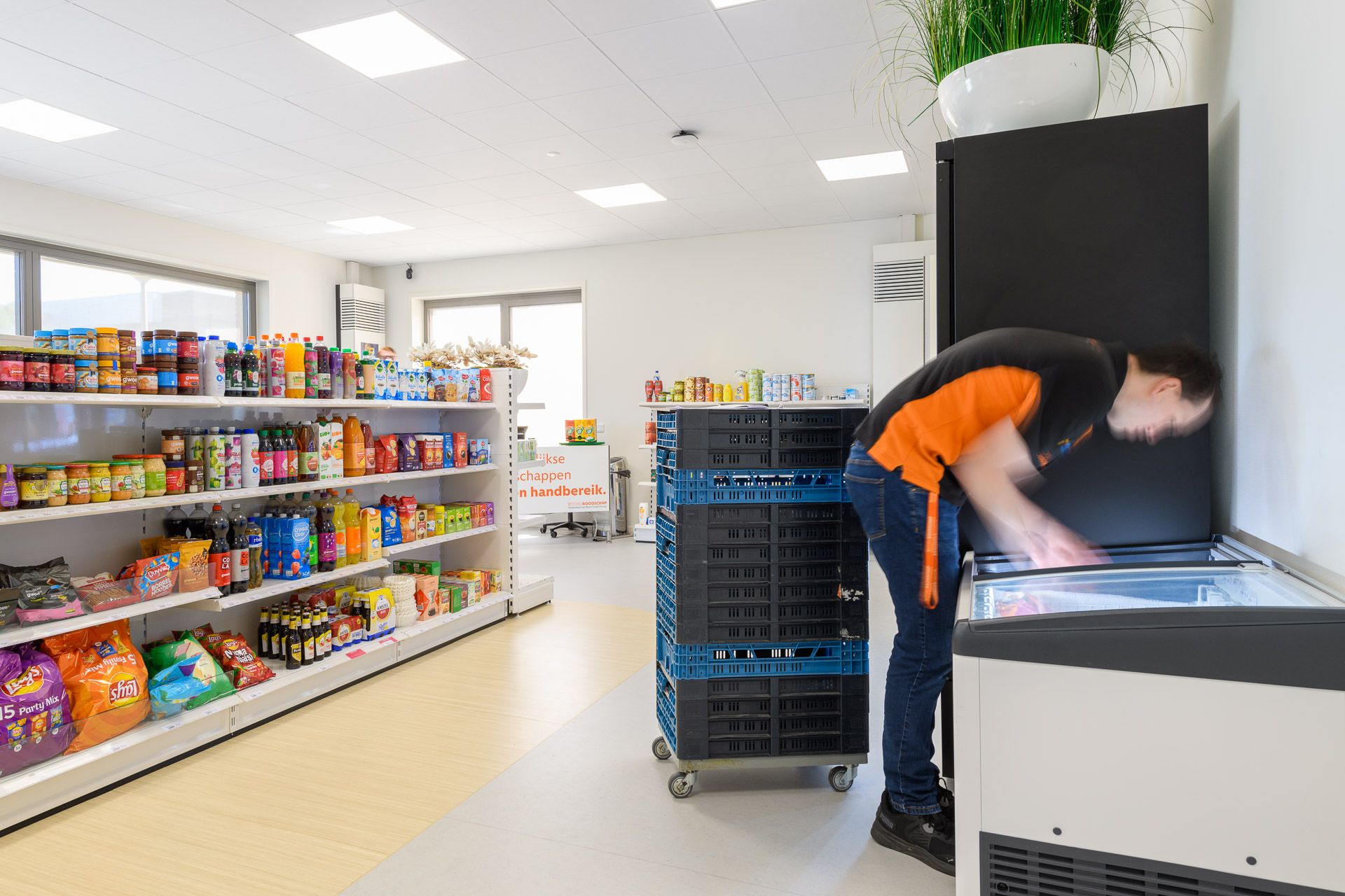 Dit nieuwe dagcentrum biedt onderdak aan een supermarkt, een werkplaats voor houtbewerking, een keuken, ruimtes voor dagbesteding en diverse multifunctionele ruimtes.