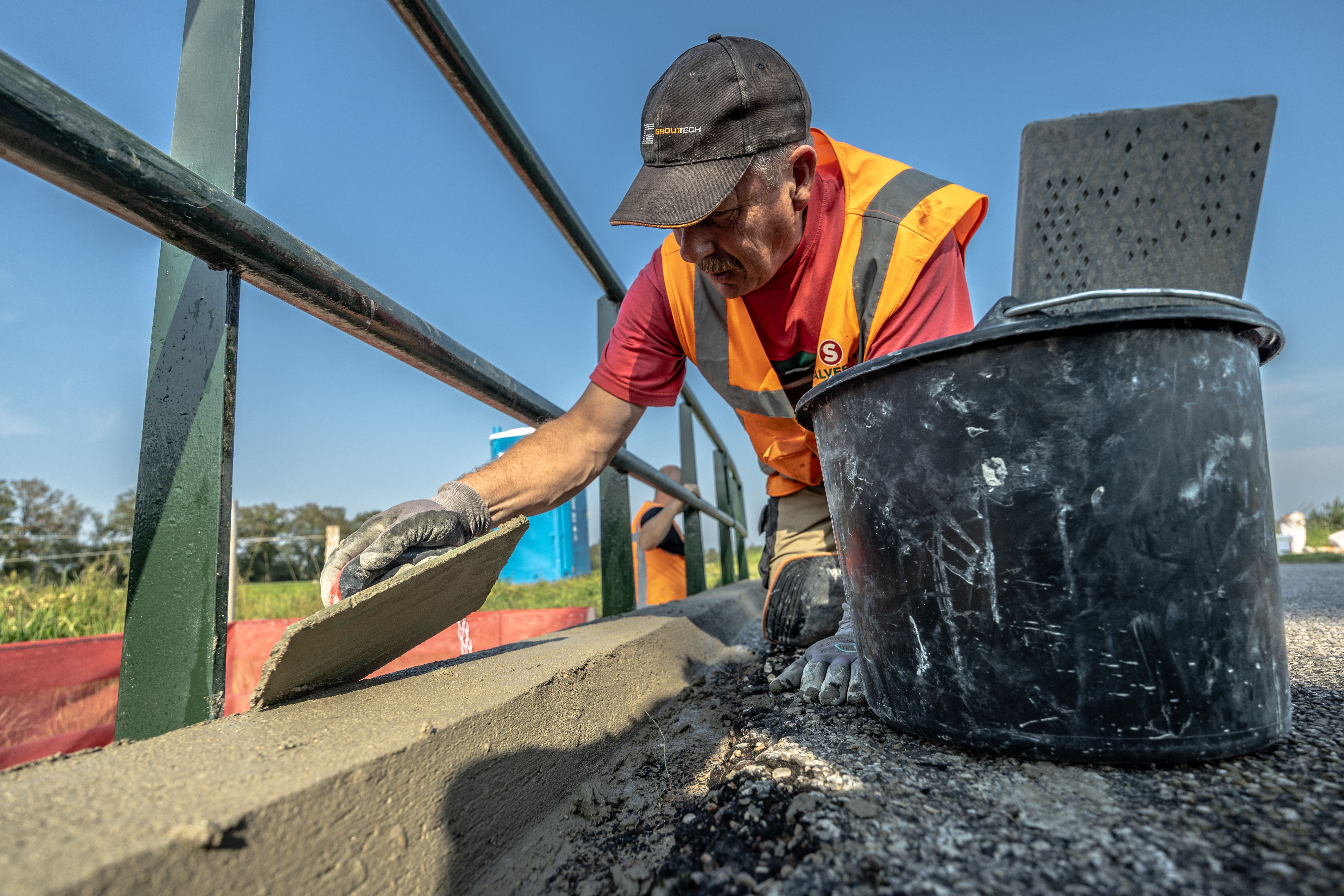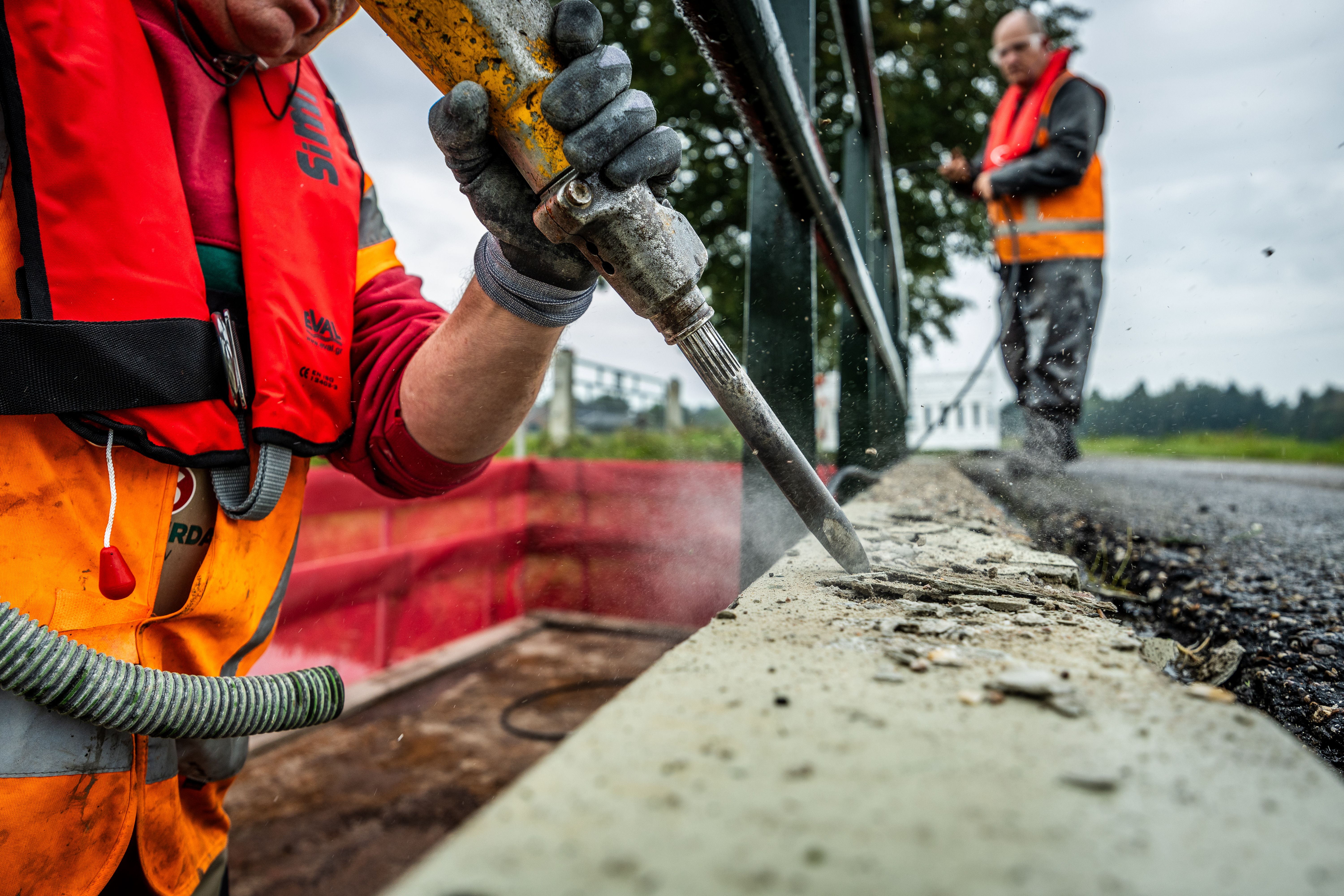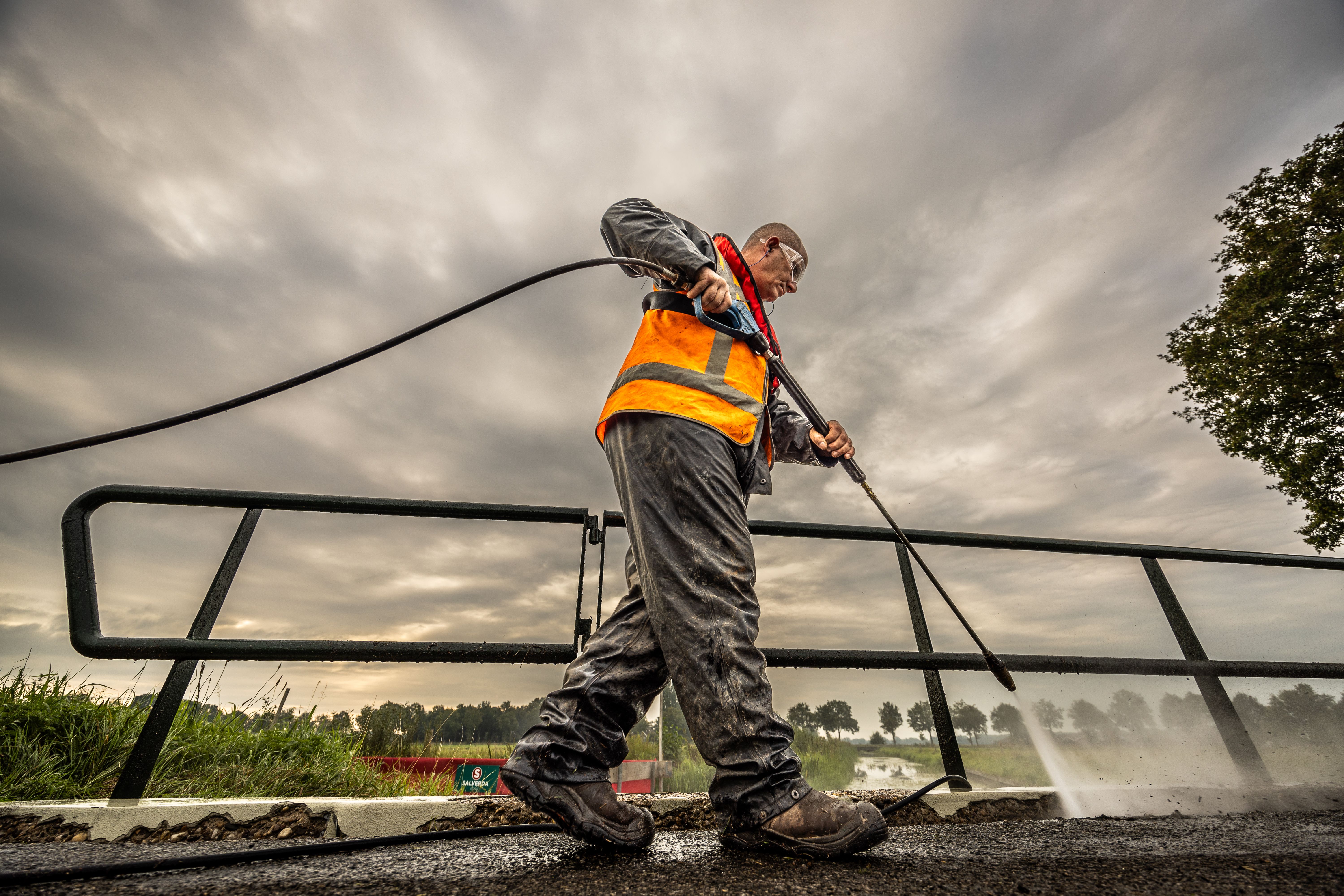 Alle zeven bruggen liggen over dezelfde waterloop. Dit betekent dat we met ons ponton gemakkelijk naar de volgende brug konden varen. Om de veiligheid te waarborgen, werkten we op een stevig ponton met hekwerk en dragen onze medewerkers indien nodig een zwemvest. Zo blijven onze werknemers veilig én zorgen we ervoor dat het water niet vervuild wordt.