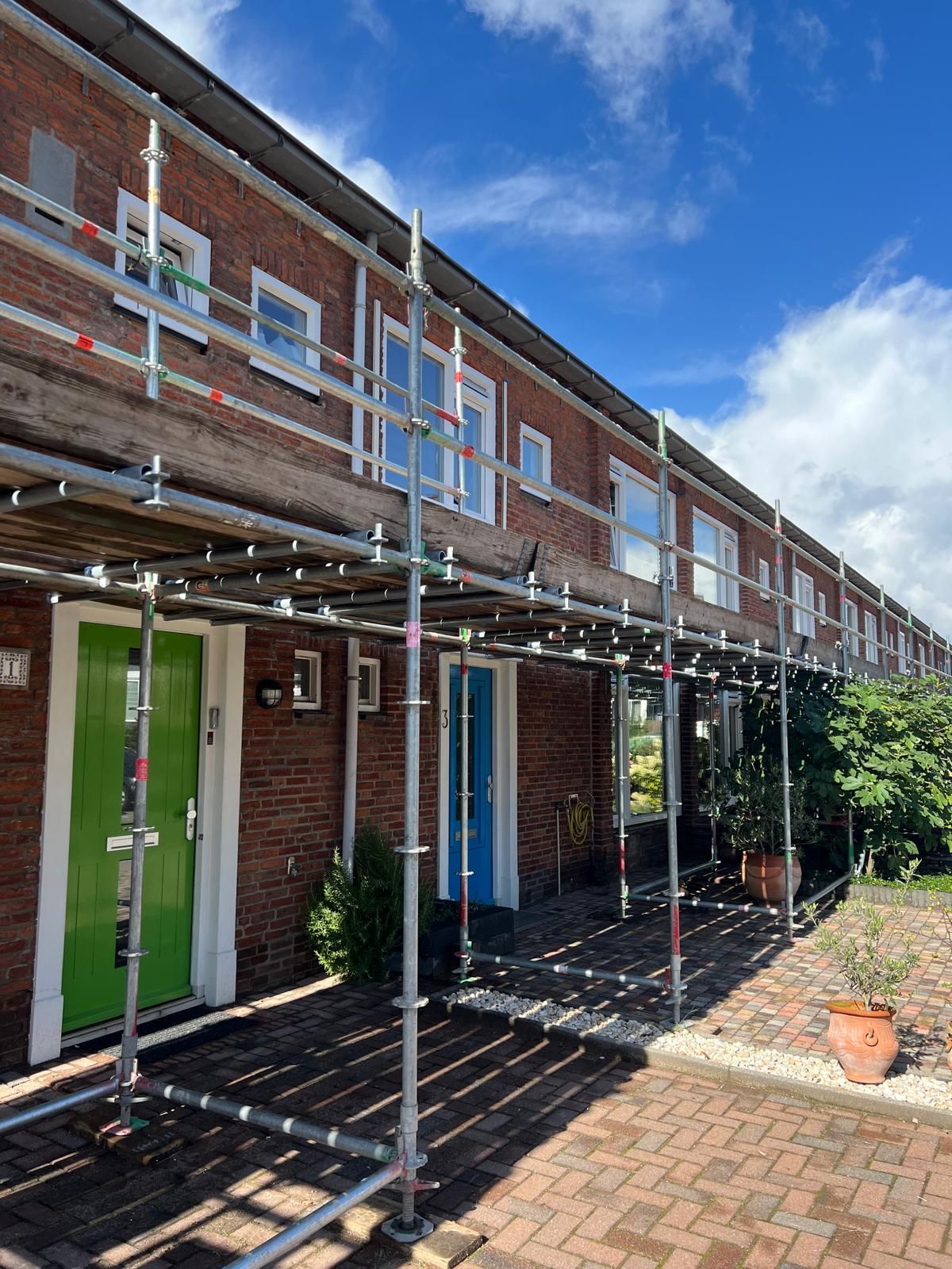 - Schilderwerk van de voordeurkozijnen en de bergingskozijnen