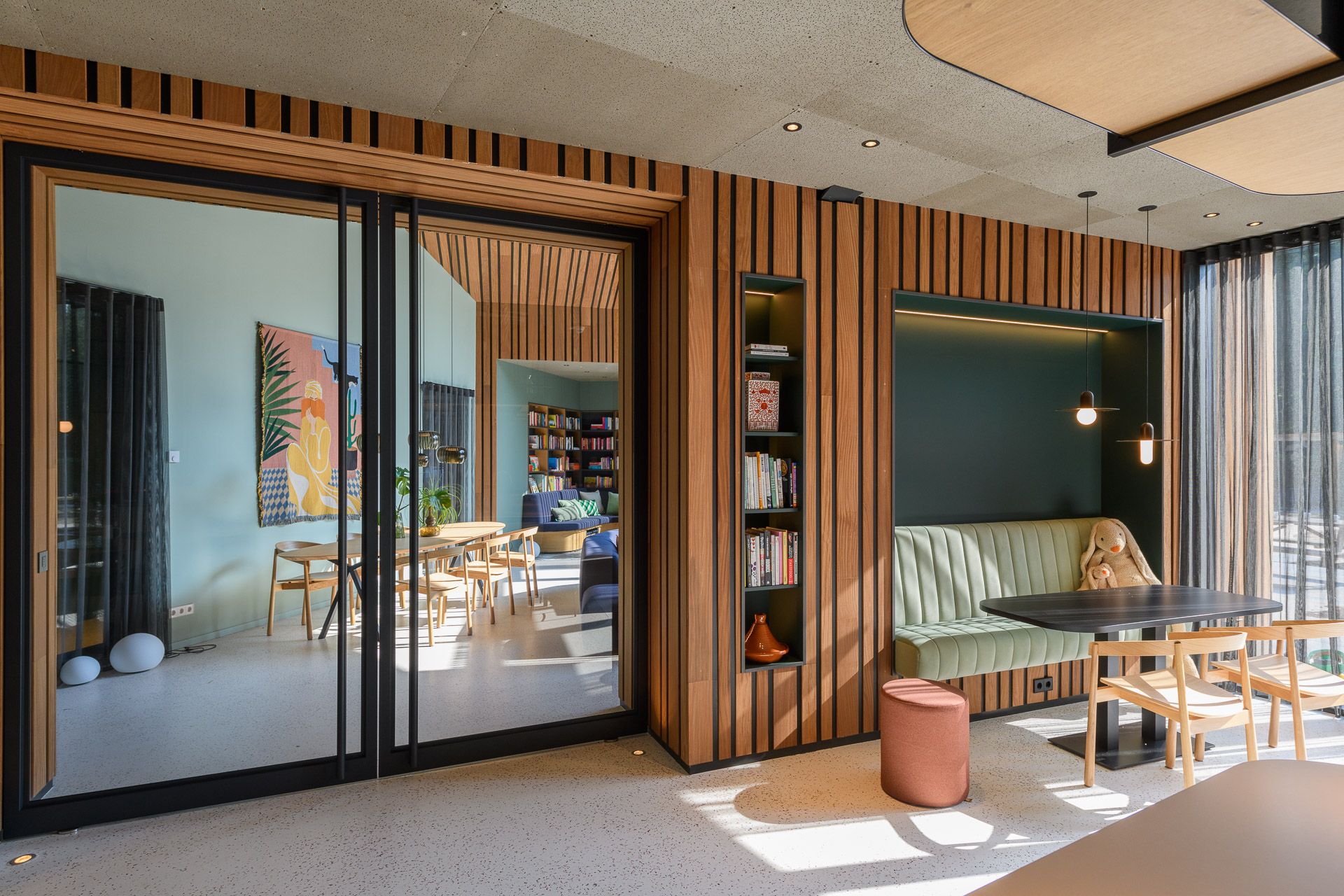 In het bestaande deel zijn de kamers van het gastenverblijf compleet vernieuwd. Ook is de gasaansluiting verwijderd, waarmee een flinke stap is gezet in de verduurzaming van het hele gebouw. Dit project was een combinatie tussen renovatie en nieuwbouw. De nieuwbouw met ontvangstruimte, keuken, kantoren, algemene faciliteiten en voorzieningen voor de gasten is gekoppeld aan het bestaande gastenverblijf. Daarnaast is in de nieuwbouw een appartement gerealiseerd voor de beheerder van het gebouw.