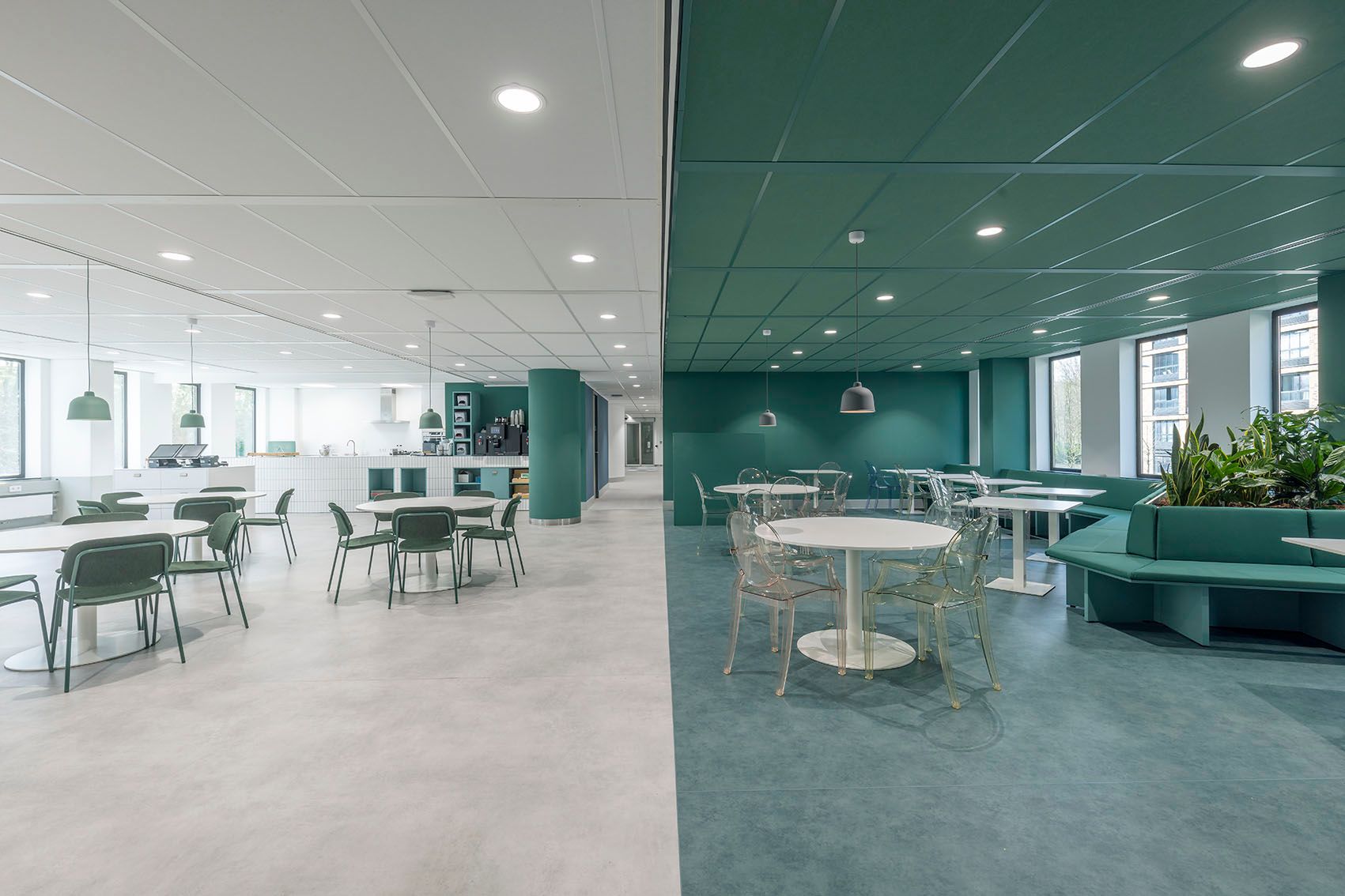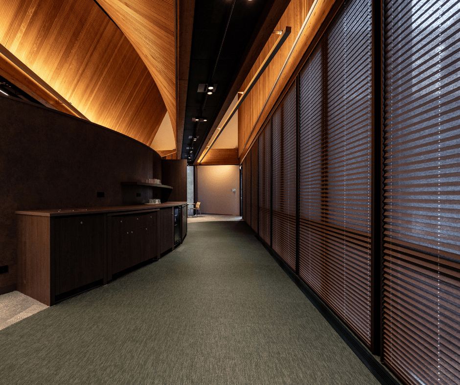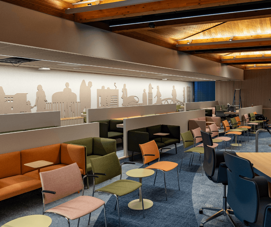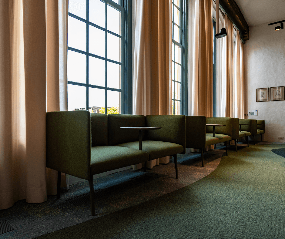 - Leemstucpanelen geplaatst en wandbespanning gemonteerd om de akoestiek te verbeteren;